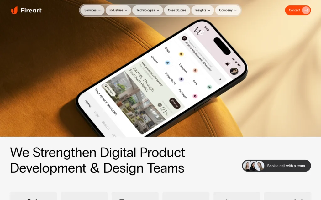 Fireart offers UI and product design services with strong visual direction, often serving startups and digital brands looking for modern design execution.